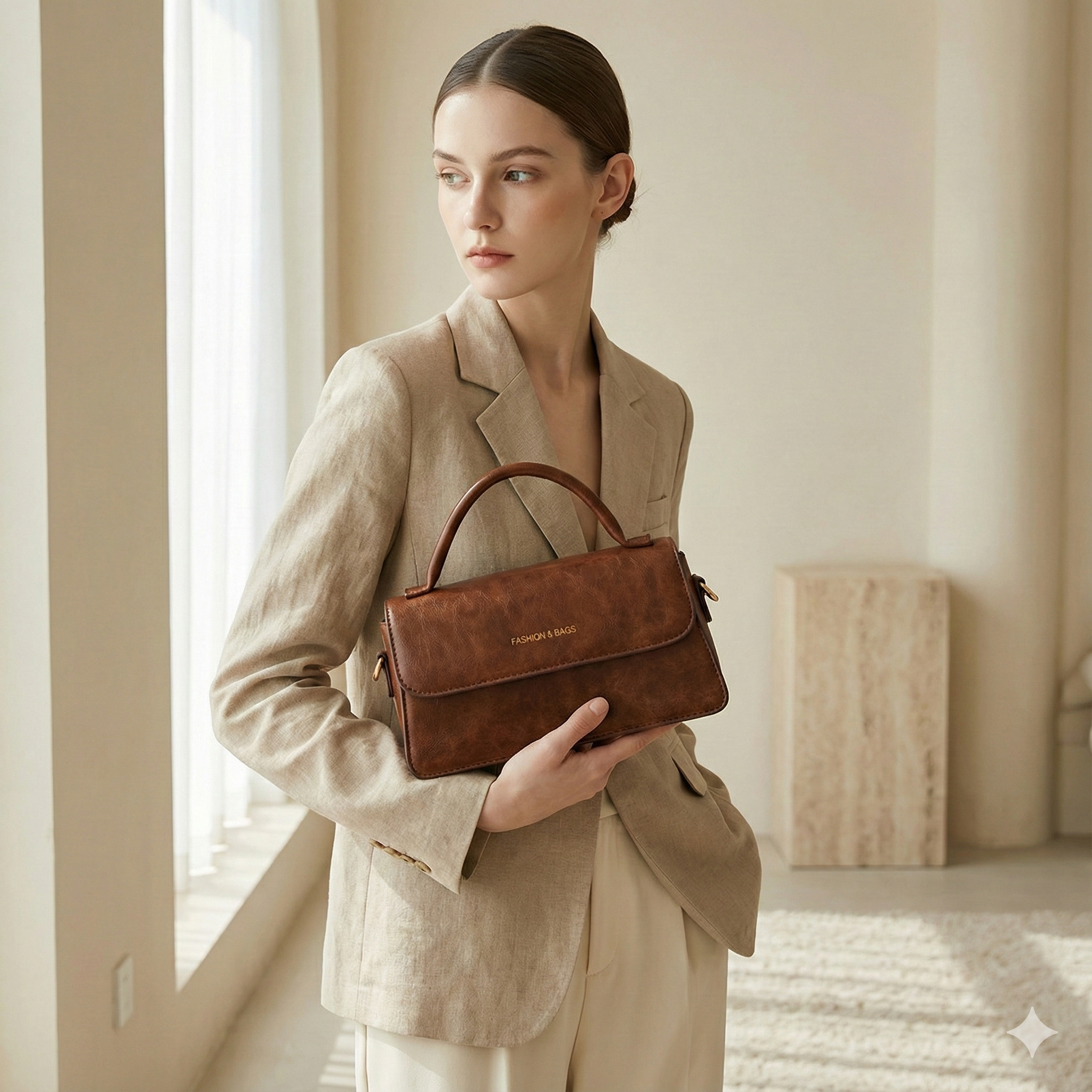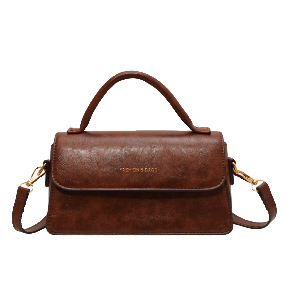 Discover timeless elegance with this retro-inspired brown leather satchel. Designed with a structured square silhouette, this bag features a durable top handle for a classic handheld look and a detachable strap for effortless crossbody wear. The rich, chocolate-brown finish is accented with polished gold-tone hardware, adding a touch of luxury to your everyday style. Its secure flap closure opens to a compact yet practical interior, perfect for storing your phone, wallet, and keys. Whether you are dressing up for a brunch date or keeping it casual for a day out, this sophisticated handbag is the perfect finishing touch to any outfit.